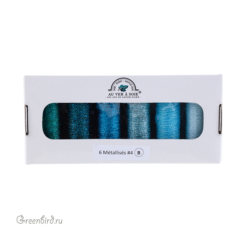 Набор металлизированных нитей Au Ver à Soie Metallise Tresse #4 6 Nuances (6 Shades) для вышивки и ручной работы. Нити Metallise Tresse представляют собой тонкий плетеный шнур и благодаря своей структуре не раскручиваются во время работы. Подходят для ручного вязания. Цвет: Blue (микс разных оттенков голубого), оттенки: #029 (морская волна), #2933 (бирюзово-синий), #006 (ярко-синий), #014 (серебристо-голубой), #049 (голубой), #094 (нежно-голубой). Состав: 35% полиэстер, 65% купро (тонкая шелковая вискоза). Производство: Франция. Цена указана за один набор (6 катушек по 10 м).