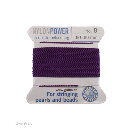 Нейлоновая нить с иглой для низания жемчуга Griffin, размер: 0,8 мм, цвет: аметист. Цена указана за упаковку (нить 2 метра, игла).