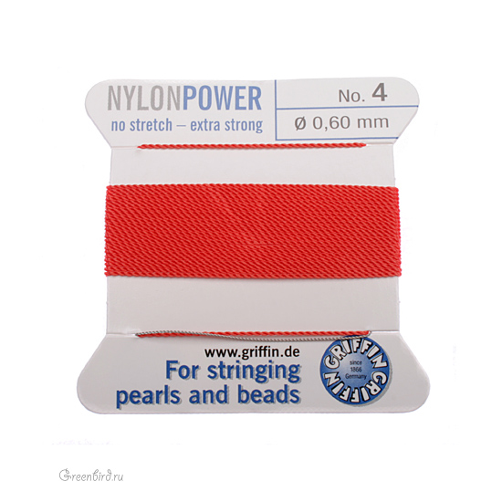 Нейлоновая нить с иглой для низания жемчуга Griffin, размер: 0,6 мм, цвет: коралл. Цена указана за упаковку (нить 2 метра, игла).
