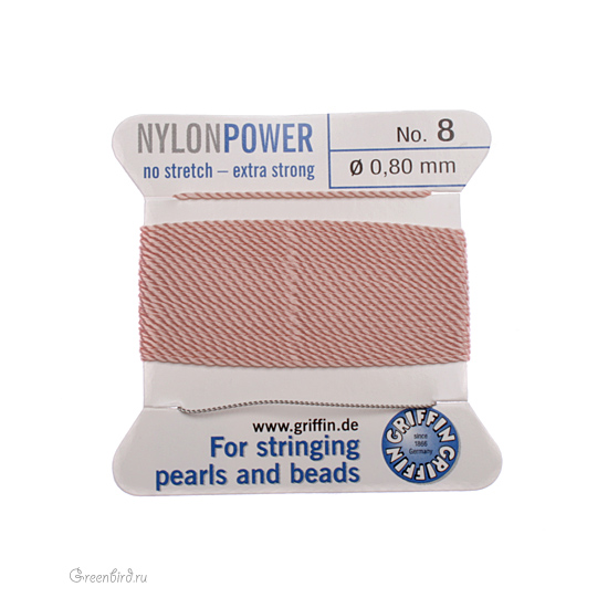 Нейлоновая нить с иглой для низания жемчуга Griffin, размер: 0,8 мм, цвет: светло-розовый. Цена указана за упаковку (нить 2 метра, игла).