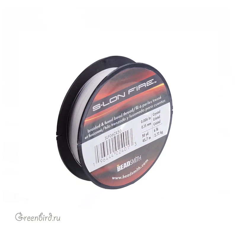 Нитки S-Lon Fire - это нить для бисероплетения, состоящая из полиэтилена гелевого формования, который известен как самое прочное волокно по диаметру из когда-либо созданных. Оно обладает невероятно высокой прочностью на растяжение. Она не растягивается, не истирается и устойчива к истиранию. Цвет: белый. Длина нити: 50 ярдов (45,72 метра), толщина нити 0,15 мм.