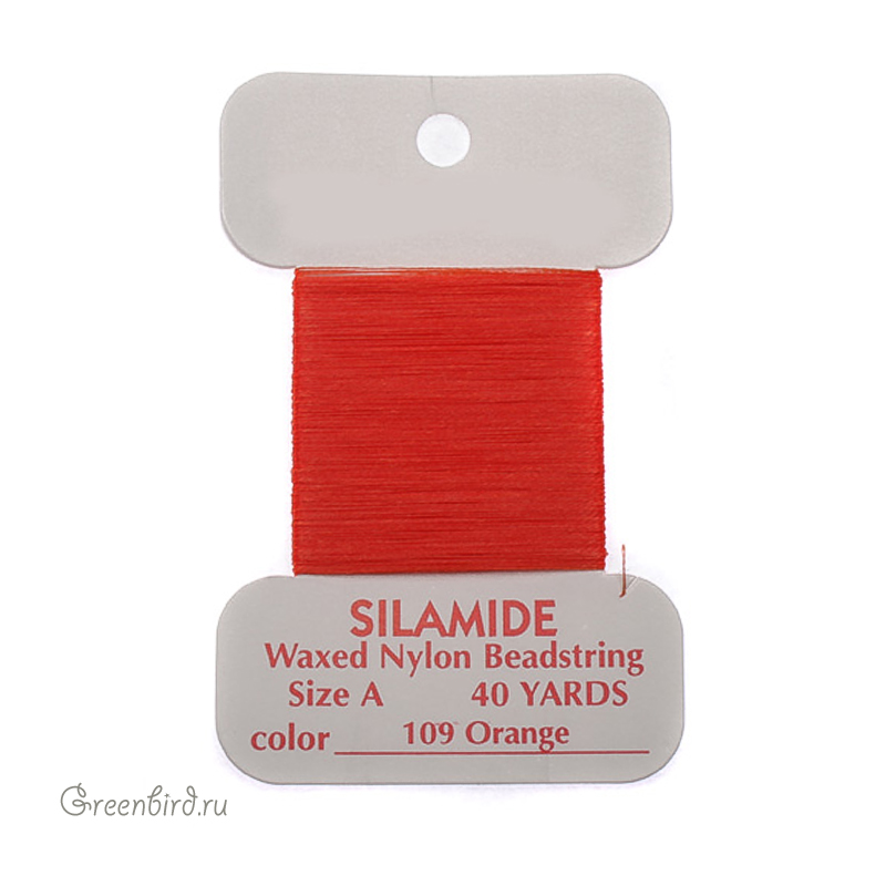 Нейлоновые вощеные нити для бисероплетения Silamide на картонной катушке, размер: А, цвет: оранжевый. Цена указана за 1 катушку – 40 ярдов (36,5 метров).