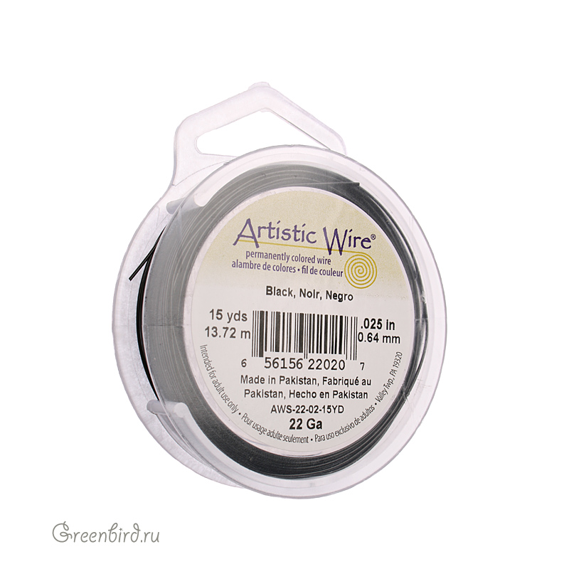Проволока для рукоделия, толщина: 22 Ga (0.644 мм), цвет: черный, производитель: Artistic Wire (США/Пакистан). Цена указана за катушку 13 метров.