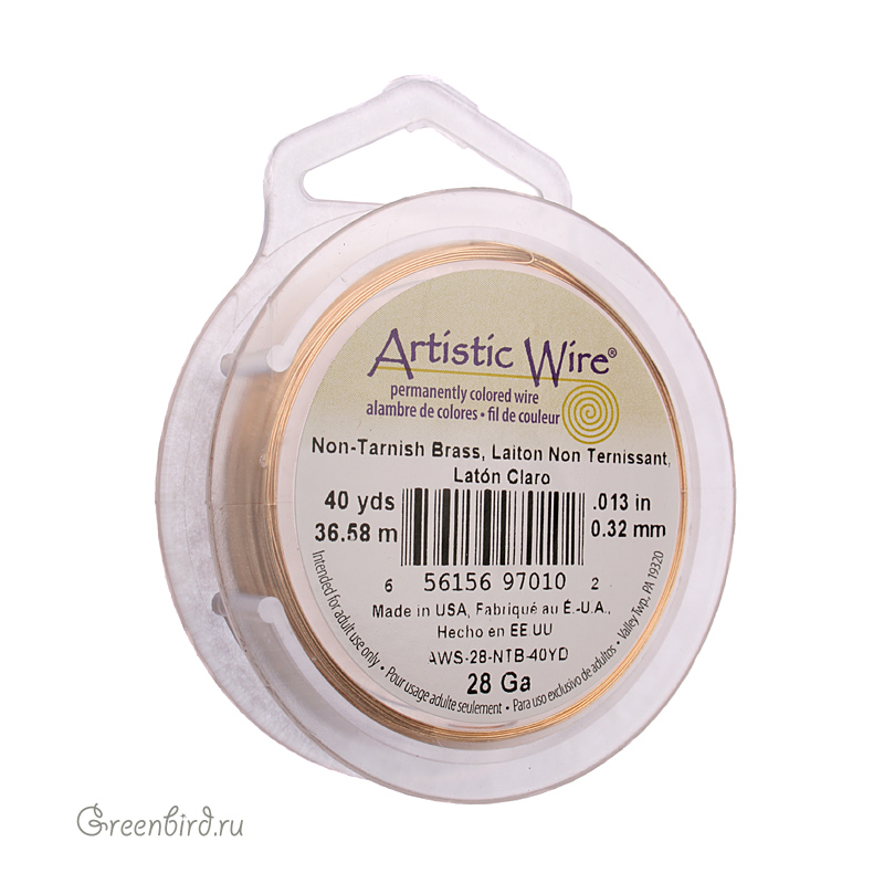 Проволока для рукоделия, толщина: 28 Ga (0.32 мм), цвет: не темнеющая латунь, золотистый, производитель: Artistic Wire (США/Пакистан). Цена указана за катушку 36 метров.