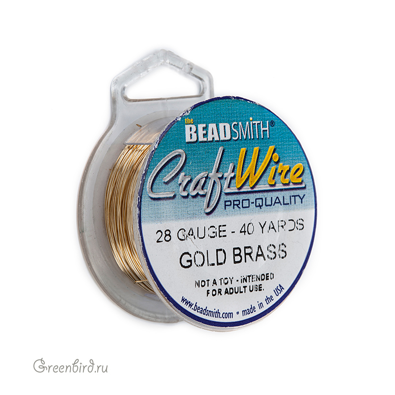 Проволока для рукоделия Craft Wire 28 Ga (0.32 мм), материал: медь, покрытие: золотистая латунь. Производство: США/Пакистан. Цена указана за катушку 40 ярдов (36,5 метра).