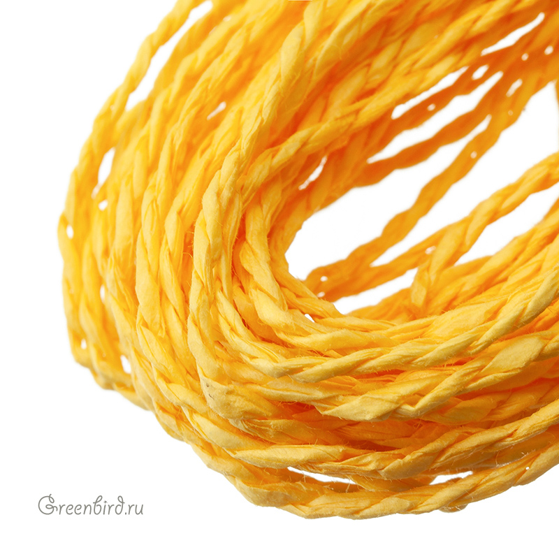 Крученая рафия — нейлоновая лента для плетения и интерьерных изделий. Ширина: 2 мм, цвет: желтый. Производство: Индия. Цена указана за 5 метров.