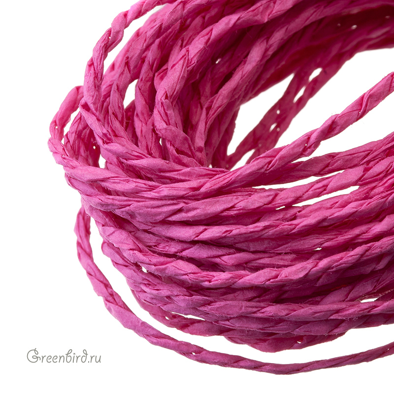 Крученая рафия — нейлоновая лента для плетения и интерьерных изделий. Ширина: 2 мм, цвет: фуксия. Производство: Индия. Цена указана за 5 метров.