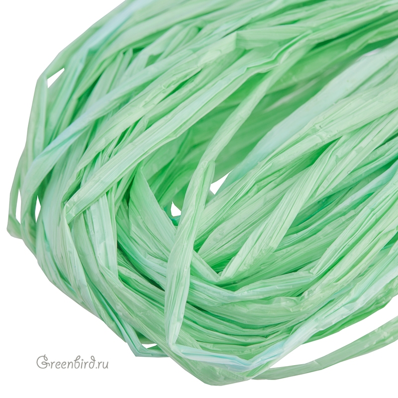 Рафия — нейлоновая лента для вышивки. Ширина: 5 мм, цвет: мягкий зеленый, матовый финиш. Рафия этого цвета окрашена неравномерно. Производство: Индия. Цена указана за 5 метров.