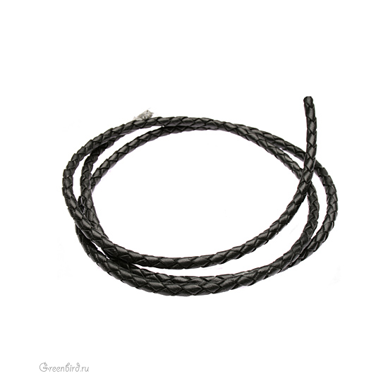 Плетеный шнур, цвет: черный, толщина: 3 мм. Материал: натуральная кожа. Страна: Индия. Цена указана за 1 метр.