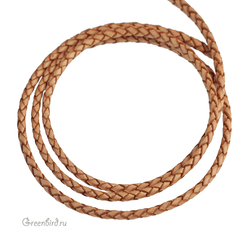 Плетеный шнур, цвет: бежевый, толщина: 3 мм. Материал: натуральная кожа. Страна: Индия. Цена указана за 1 метр.