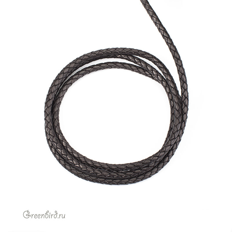 Плетеный шнур, цвет: черный, толщина: 5 мм. Материал: натуральная кожа. Страна: Индия. Цена указана за 1 метр.