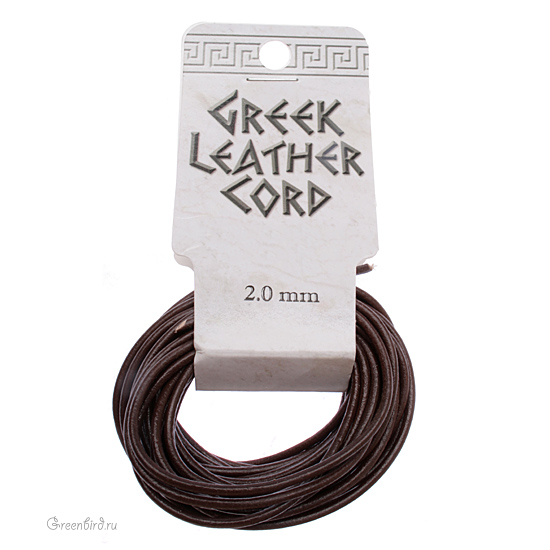 Круглый шнур, цвет: коричневый, толщина: 2 мм, материал: натуральная кожа. Производство: Греция. Цена указана за упаковку (5 метров).