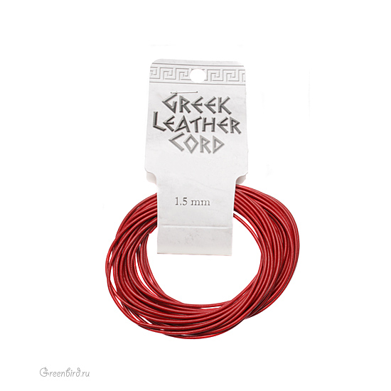 Круглый шнур, цвет: красный, толщина: 1.5 мм, материал: натуральная кожа. Производство: Греция. Цена указана за упаковку (5 метров).