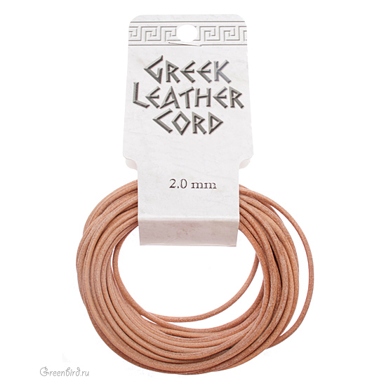 Круглый шнур, цвет: бежевый, толщина: 2 мм, материал: натуральная кожа. Производство: Греция. Цена указана за упаковку (5 метров).