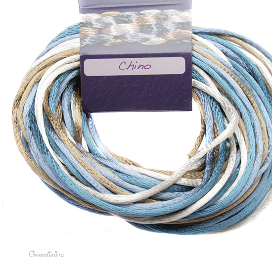 Сатиновый шнур для работы в японской технике кумихимо. Толщина: 2 мм, длина: 3 ярда (около 2,7 метров). Цвет: Микс Chino (капри, загар, кофе, голубой). Производство: США. Цена указана за упаковку (4 шнура).