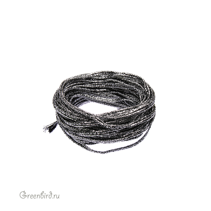 Сутаж, цвет: черный/серебро, материал: металлизированные нити (шершавый на ощупь), толщина: 3 мм, производство: США. Цена указана за 5 метров.