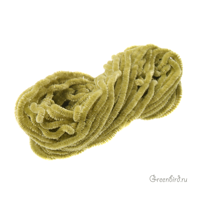 Синель (100% шелк), используется в декоративной вышивке. Цвет: светлый оливин, толщина: 3-3,5 мм. Производство: Париж (Франция). Цена указана за 1 метр.