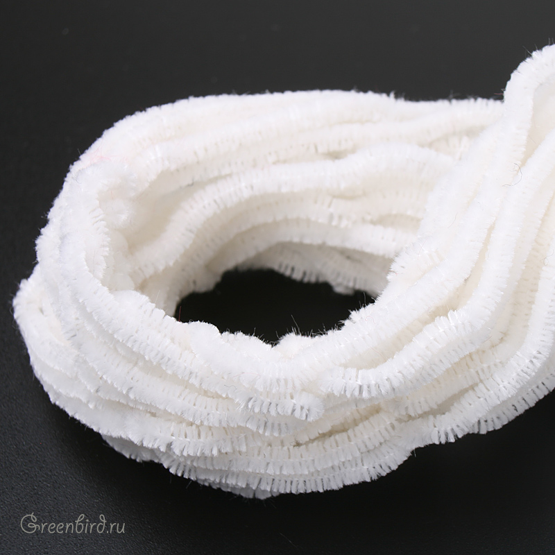 Синель (100% шелк), используется в декоративной вышивке. Цвет: белый, толщина: 3-3,5 мм. Производство: Париж (Франция). Цена указана за 1 метр.
