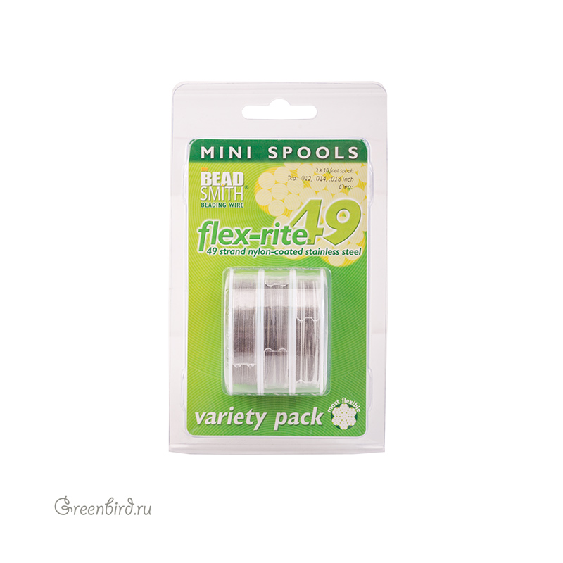 Набор ювелирных тросиков Flex-Rite из 49 стальных струн, размеры: 0.012'' (0.30 мм), 0.014'' (0.35 мм), 0.018'' (0.45 мм).