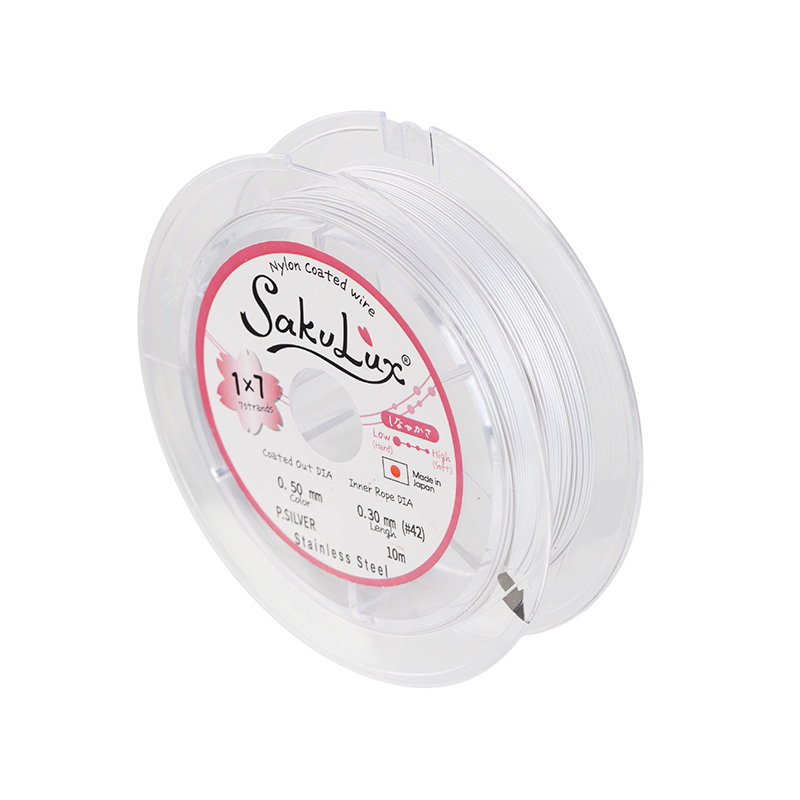 Профессиональный японский ювелирный тросик SakuLux (FLEXY) идеально подходит для создания украшений и аксессуаров. Трос (ланка) выполнен из высококачественной стали с прочной и гибкой нейлоновой оплеткой серебристого цвета.