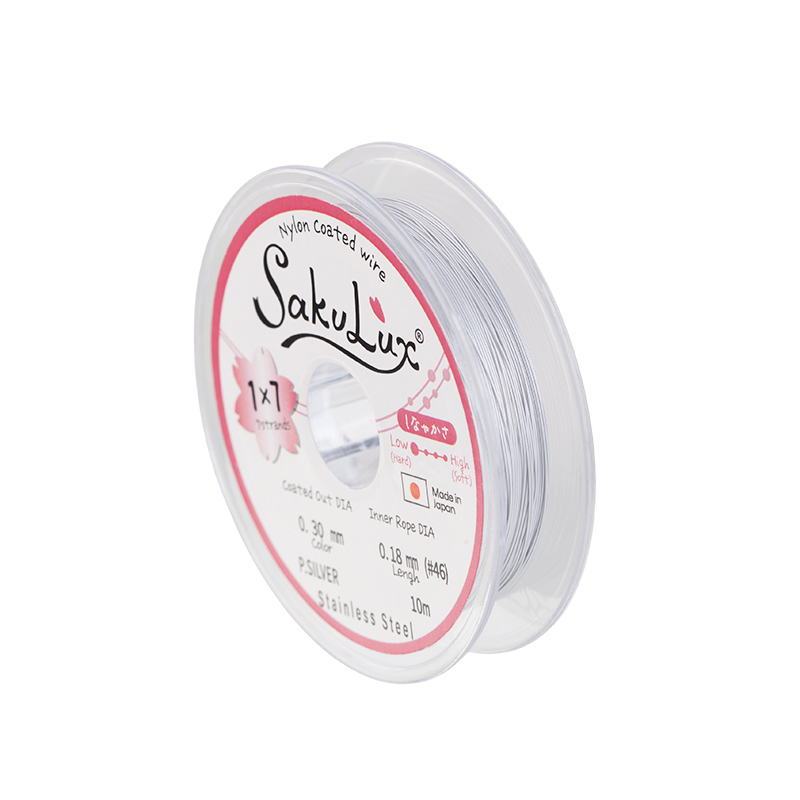 Профессиональный японский ювелирный тросик SakuLux (FLEXY) идеально подходит для создания украшений и аксессуаров. Трос (ланка) выполнен из высококачественной стали с прочной и гибкой нейлоновой оплеткой серебристого цвета.