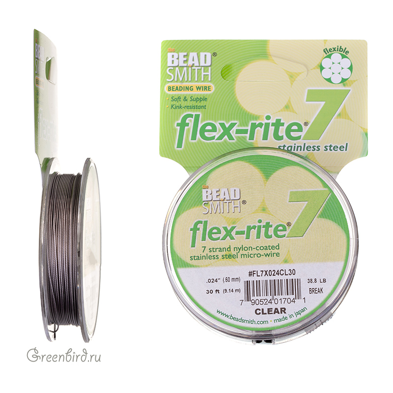 Ювелирный тросик, размер: 0.024'' (0.60 мм), цвет: серебристый тросик, покрытый прозрачным нейлоном. Выдерживает вес до 9 кг. Цена указана за 1 катушку 30 футов (9,14 метров).
