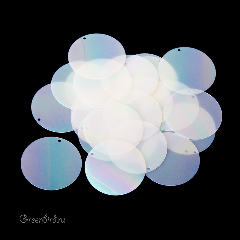 Пайетки плоские Motivo M34 со смещенным отверстием (100% полиэстер), используются в декоративной вышивке. Цвет: слоновая кость AB, эффект: Orientali, размер: 24 мм. Производство: Италия. Цена указана за 3 грамма (примерно 20 штук).