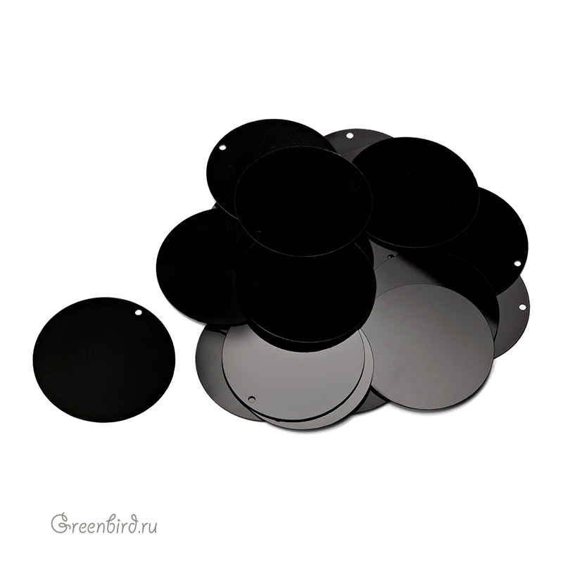 Пайетки плоские Motivo M34 со смещенным отверстием (100% полиэстер), используются в декоративной вышивке. Цвет: черный, эффект Metal, размер: 24 мм. Производство: Италия. Цена указана за 3 грамма (примерно 20 штук).