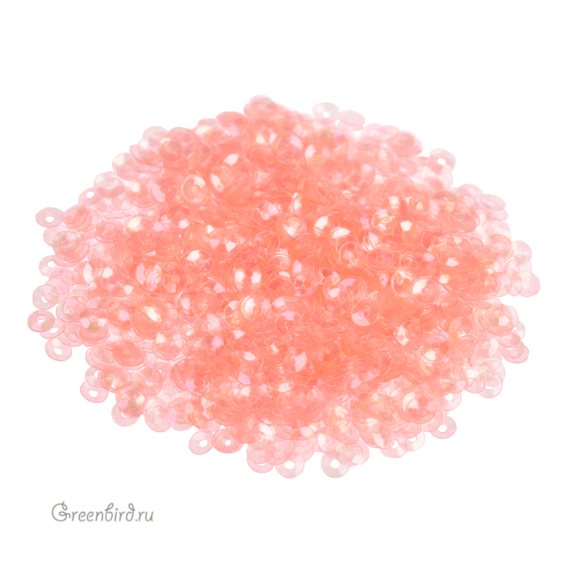 Пайетки чаша (100% полиэстер), используются в декоративной вышивке. Цвет: розовый полупрозрачный, эффект: Irise Trasparenti, размер: 3 мм. Производство: Италия. Цена указана за 3 грамма (примерно 1700 штук).
