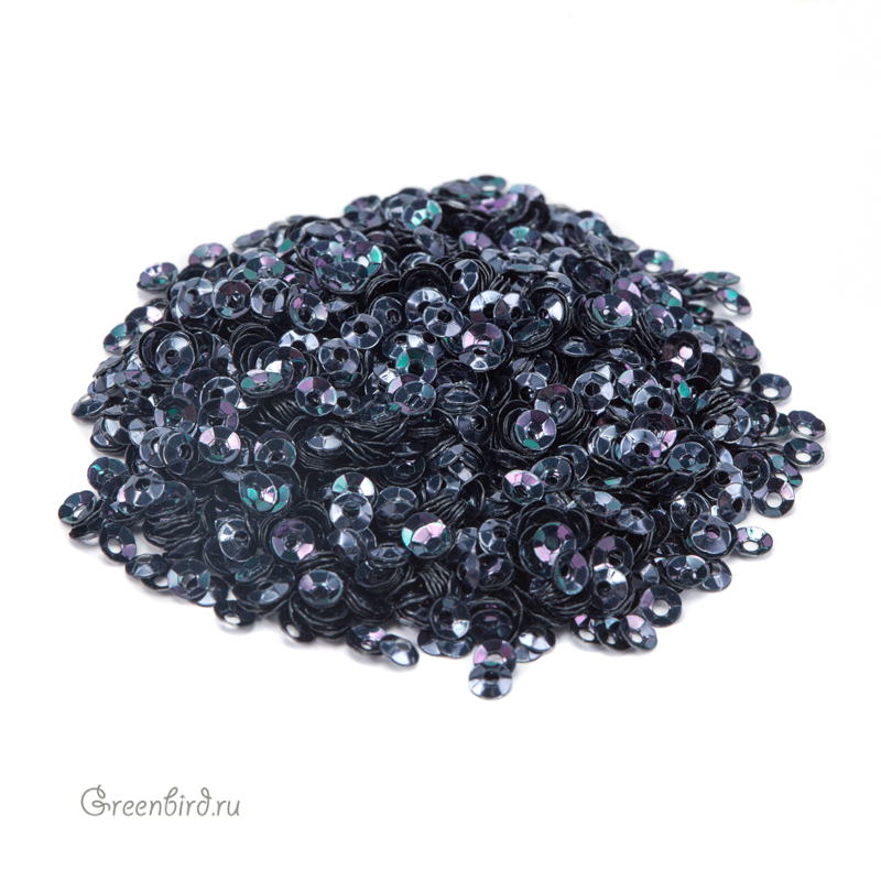 Пайетки чаша (100% полиэстер), используются в декоративной вышивке. Цвет: серый скарабей, эффект Irise Metallizzati, размер: 3 мм. Производство: Италия. Цена указана за 3 грамма (примерно 1700 штук).