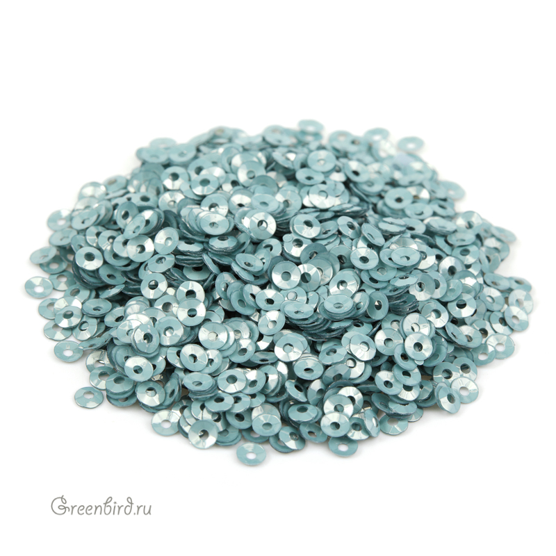 Пайетки чаша (100% полиэстер), используются в декоративной вышивке. Цвет: зеленая бирюза, эффект: Metal, размер: 3 мм. Производство: Италия. Цена указана за 3 грамма (примерно 1700 штук).
