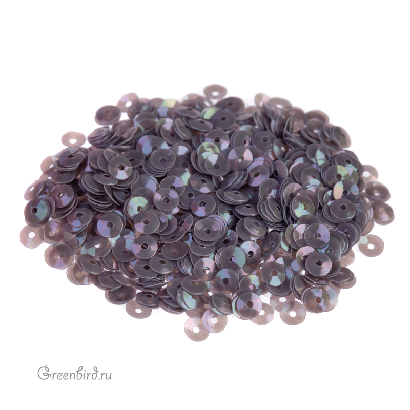Пайетки чаша (100% полиэстер), используются в декоративной вышивке. Цвет: серый (на просвет лилово-коричневый), эффект Orientali, размер: 4 мм. Производство: Италия. Цена указана за 3 грамма (примерно 1000 штук).