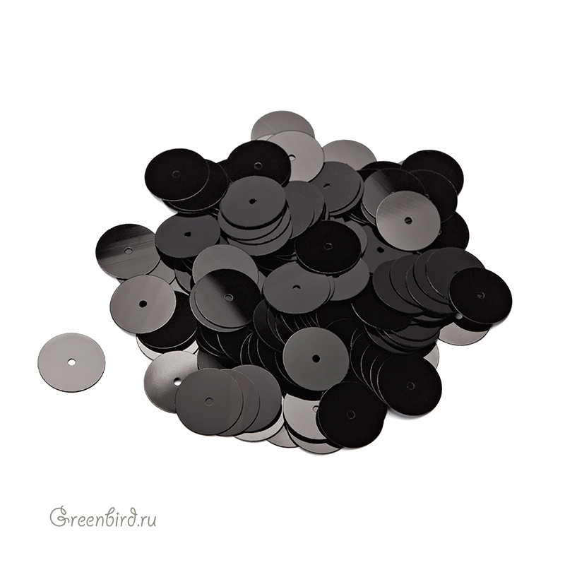 Пайетки плоские (100% полиэстер), используются в декоративной вышивке. Цвет: черный, эффект Metal, размер: 10 мм. Производство: Италия. Цена указана за 3 грамма (примерно 156 штук).