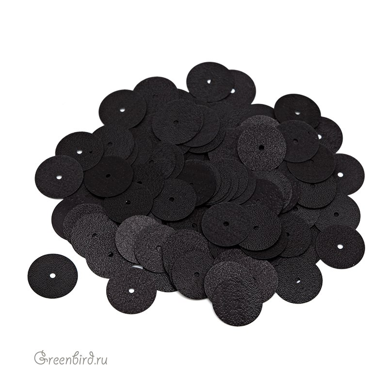 Пайетки плоские (100% полиэстер), используются в декоративной вышивке. Цвет: черный, эффект Satinati MT, размер: 10 мм. Производство: Италия. Цена указана за 3 грамма (примерно 156 штук).
