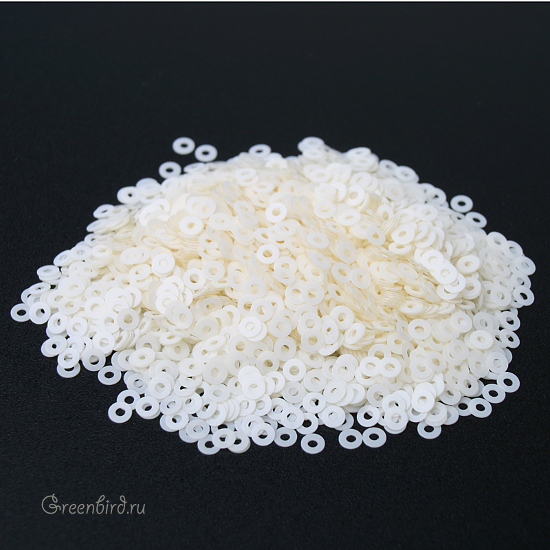 Пайетки плоские (100% полиэстер), используются в декоративной вышивке. Цвет: слоновая кость, эффект Opaline, размер: 2 мм. Уход: бережная стирка 30°, не отбеливать, гладить на единичке (120°), не сушить в барабане машинки, сухая чистка ℗. Производство: Италия. Цена указана за 2 грамма (примерно 2700 штук).