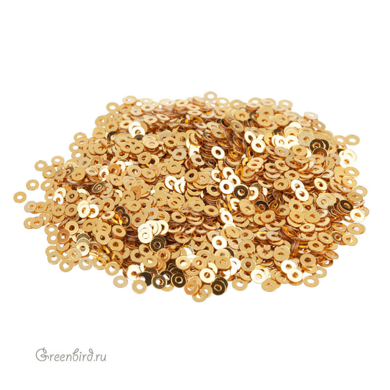 Пайетки плоские (100% полиэстер), используются в декоративной вышивке. Цвет: золото, эффект Metallizzati, размер: 2 мм. Производство: Италия. Цена указана за 2 грамма (примерно 2700 штук).