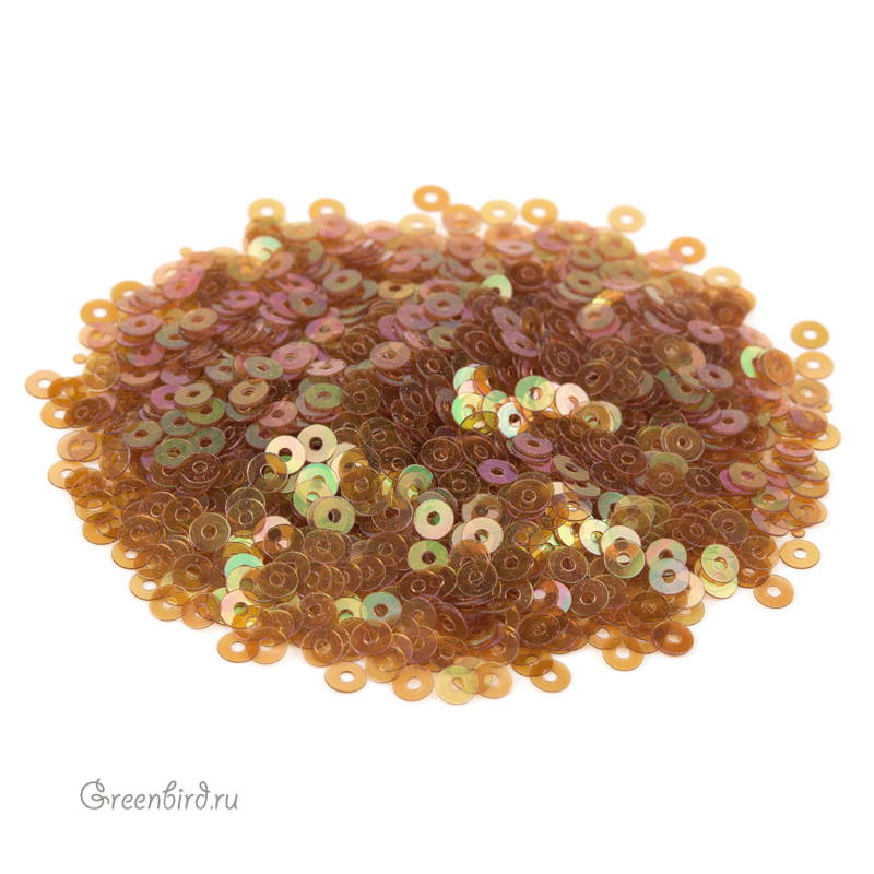 Пайетки плоские (100% полиэстер), используются в декоративной вышивке. Цвет: коричневый, эффект Irise Transparenti, размер: 3 мм. Производство: Италия. Цена указана за 3 грамма (примерно 1800 штук).