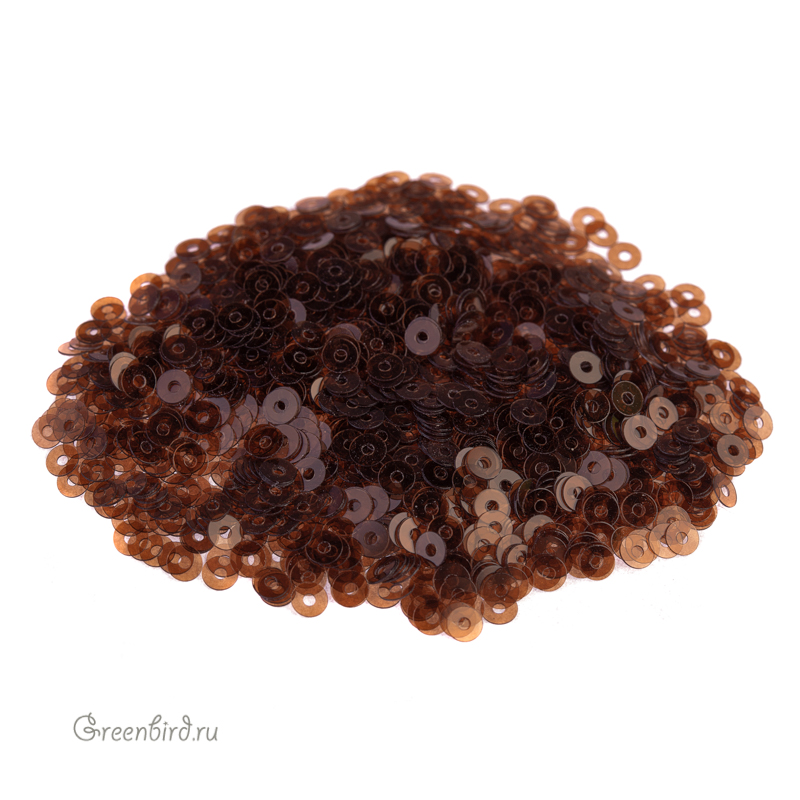Пайетки плоские (100% полиэстер), используются в декоративной вышивке. Цвет: светло-коричневый, прозрачный, размер: 3 мм. Производство: Италия. Цена указана за 3 грамма (примерно 1800 штук).