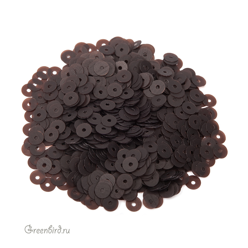 Пайетки плоские (100% полиэстер), используются в декоративной вышивке. Цвет: темно-коричневый, эффект: Fancy, размер: 4 мм. Уход: бережная стирка 30°, не отбеливать, гладить на единичке (120°), не сушить в барабане машинки, сухая чистка ℗. Производство: Италия. Цена указана за 3 грамма (примерно 1000 штук).
