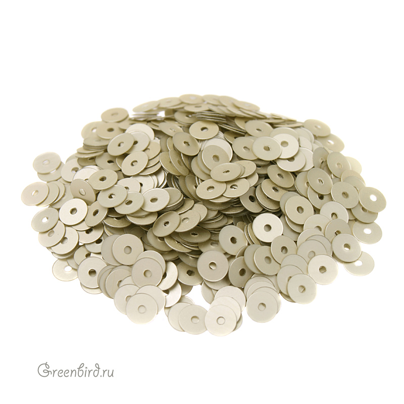 Пайетки плоские (100% полиэстер), используются в декоративной вышивке. Цвет: шампань, эффект: Satinati MT, размер: 4 мм. Уход: бережная стирка 30°, не отбеливать, гладить на единичке (120°), не сушить в барабане машинки, сухая чистка ℗. Производство: Италия. Цена указана за 3 грамма (примерно 1000 штук).
