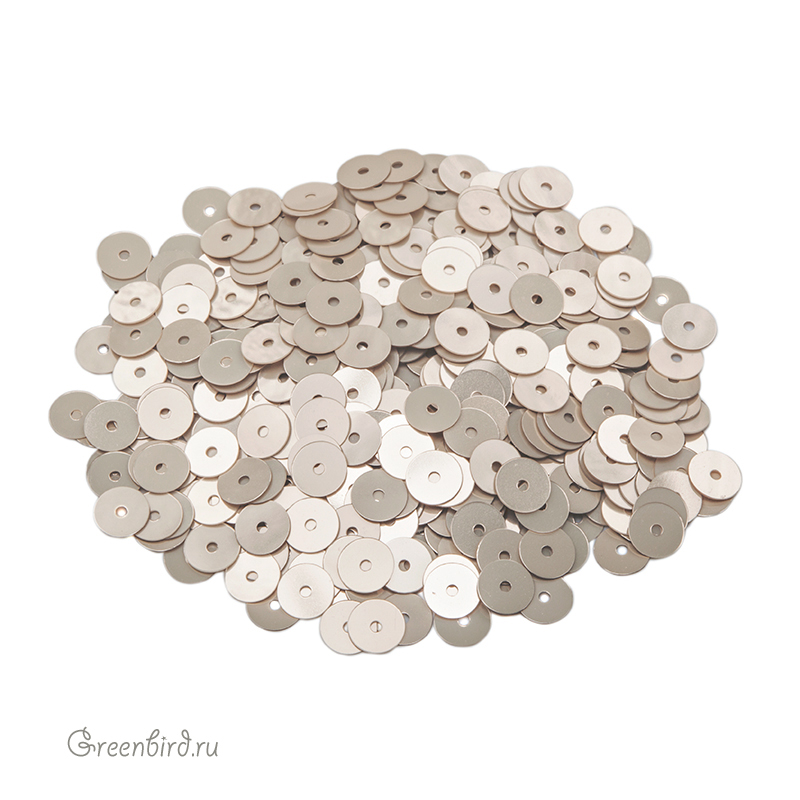 Пайетки плоские (100% полиэстер), используются в декоративной вышивке. Цвет: розовое золото, эффект Metal, размер: 5 мм. Производство: Италия. Цена указана за 3 грамма (примерно 645 штук).