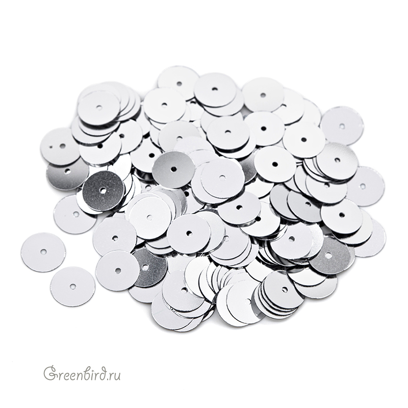 Пайетки плоские (100% полиэстер), используются в декоративной вышивке. Цвет: серебро, эффект Metallizzati, размер: 8 мм. Производство: Италия. Цена указана за 3 грамма (примерно 244 штуки).