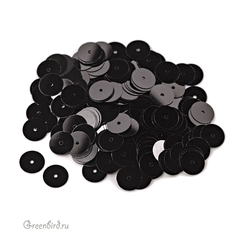 Пайетки плоские (100% полиэстер), используются в декоративной вышивке. Цвет: черный, эффект Metal, размер: 8 мм. Производство: Италия. Цена указана за 3 грамма (примерно 244 штуки).