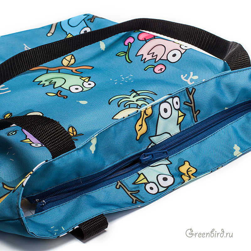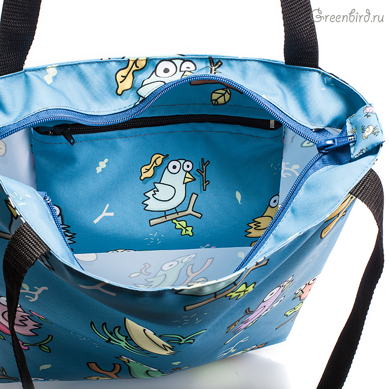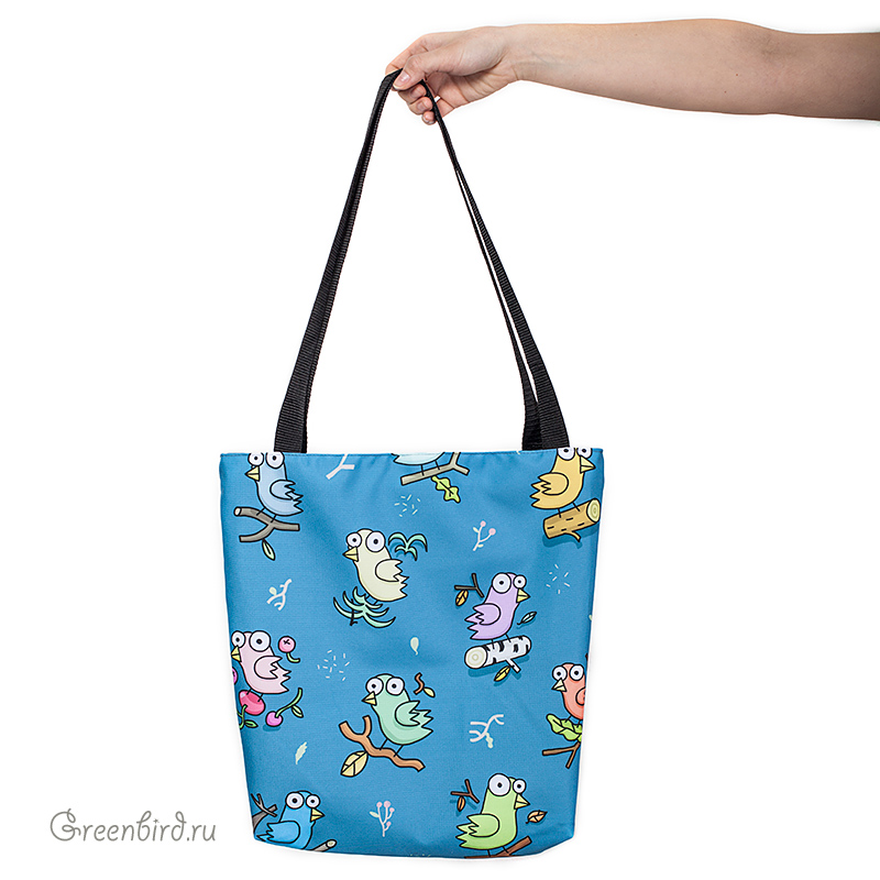 Сумка "Птичка в лесу" на молнии (100% полиэстер) из долговечного износостойкого и водоотталкивающего полотна — незаменимый компаньон для походов за продуктами, на пляж или к нам в шоурум. Внутри маленький кармашек с молнией, ручки из плотной ткани. Стирка при 30 градусах, можно сушить в машинке, не линяет. Рекомендуемая нагрузка: не более 2 кг. Цена указана за 1 шт.