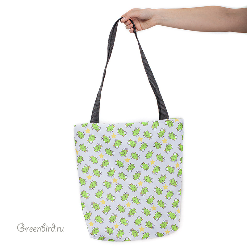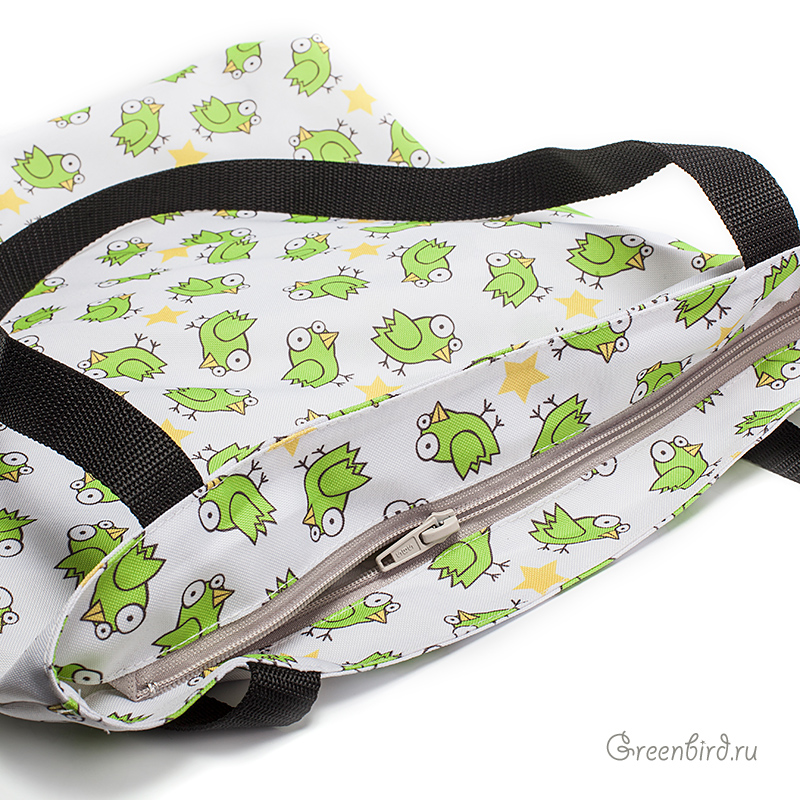 Сумка "Зеленая птичка" на молнии (100% полиэстер) из долговечного износостойкого и водоотталкивающего полотна — незаменимый компаньон для походов за продуктами, на пляж или к нам в шоурум. Внутри маленький кармашек с молнией, ручки из плотной ткани. Стирка при 30 градусах, можно сушить в машинке, не линяет. Рекомендуемая нагрузка: не более 2 кг. Цена указана за 1 шт.