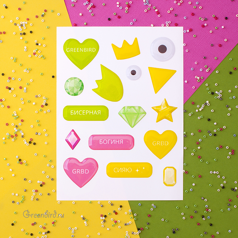 Фирменный сувенирный набор 3D стикеров Greenbird. Стикерпак состоит из 16 объемных стикеров, которые можно наклеить на телефон, планшет или ноутбук. Изготовлены из безопасной в применении эпоксидной смолы. Рекомендуем приклеивать на чехол предварительно обезжирив поверхность. Размер листа: A6 (14,8 х 10,5 см). Стоимость указана за 1 набор.