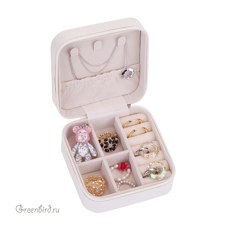 Компактная и удобная шкатулка для хранения ювелирных украшений и бижутерии. Может быть использована как дорожный органайзер.