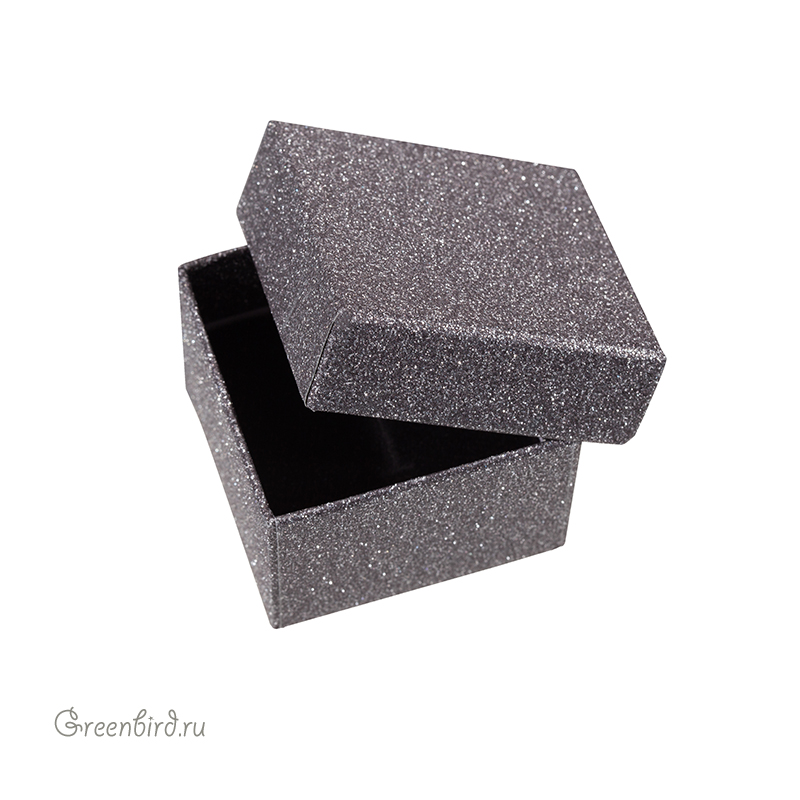 Картонная коробочка для упаковки подарков, размер: 5 х 5 х 3,5 см; цвет: черный с блеском, внутри коробочки бархатный черный ложемент. Цена указана за 1 шт.