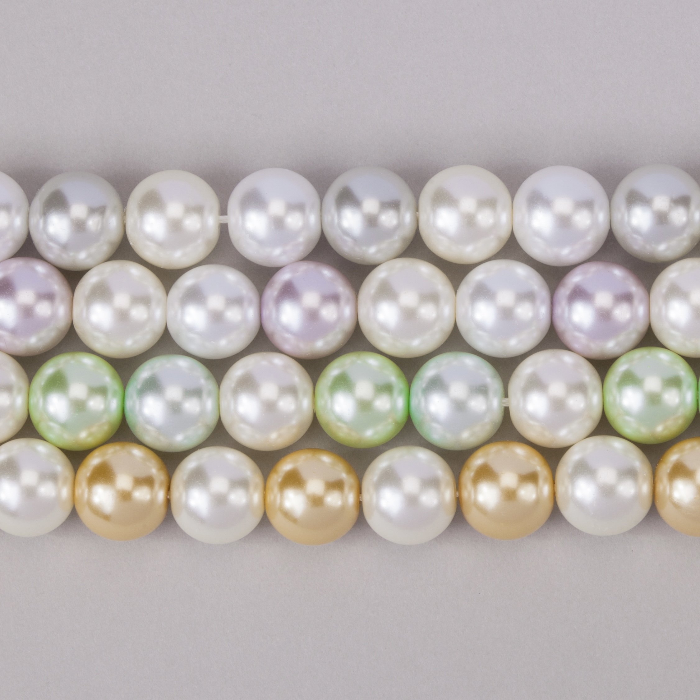 Жемчуг CRYSTALBIRD незначительно отличается по форме — бусины немного "сплюснуты" по сторонам, на которых отверстия. Это не имеет особого значения при сборке украшений или в простом плетении, но может повлиять на то, как он поведет себя в сложных схемах, где нужна идеально круглая форма бусин.